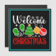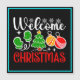 Diseño alegre de bienvenida de Navidad con un árbol festivo, adornos, mitones y copos de nieve—perfecto para regalos navideños, decoración y ropa de temporada. (Código de diseño-23758).