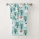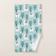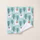 Llama personalizado dulce con un árbol de navidad nevado y cajas de regalo sobre fondo turquesa