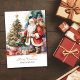 Tarjeta navideña personalizada de color de agua estilo vintage Santa & Xmas Tree