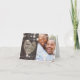 Nota de agradecimiento de boda rústica con una foto de la novia y el novio, luces centelleantes, un viejo árbol rústico con un corazón tallado con su mensaje de agradecimiento.