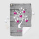 Personalice una toalla única para jugar golf con una toalla de golf personalizada Magenta Tree of Hearts. El diseño de las toallas incluye un florido árbol de corazones sobre un fondo de madera gris con un espacio que se personaliza con tu nombre. Artículos de regalo adicionales disponibles con este diseño así como una variedad de colores.