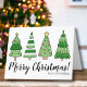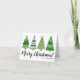 Desea a todos una muy Feliz Navidad con esta tarjeta temática de árbol de Navidad linda y colorida. Puedes cambiar toda la tipografía para personalizarla con tus propias frases además de los nombres de tu familia. La paleta de colores incluye una mezcla alegre de tonos verdes oscuros y claros con pequeños toques de rojo, rosa y un poco de amarillo. Esta impresión encapsula la fantasía y la alegría de la temporada navideña. Tarjeta de vacaciones de árboles de Navidad alegre con nombre personalizado, escritura verde simple y moderna.