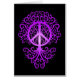 Características del este diseño púrpuras elaboradas del árbol el símbolo para la paz en el medio de ramas tribales que fluyen. Las raíces grandes se separaron fuera de la parte inferior de este modelo simétrico con el tronco que corría para arriba el centro. El árbol se sienta en un fondo negro puro que cree un contraste imponente. Las ramas y las raíces se componen de los remolinos y de las líneas delicados que vienen juntos crear un diseño de tarjeta elegante.