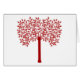 Estos objetos están adornados con una imagen estilizada de un árbol frondoso en un esquema de color rojo y blanco. Haga clic en "personalizar" si desea cambiar el color de fondo de las tarjetas, botones o imanes.