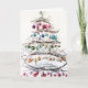 Árbol de moda rústico con adornos de colores vivos en tarjeta de Navidades