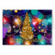 Tarjeta de nota hermosa y colorida del día de fiesta que ofrece diseño de oro del árbol y de las estrellas de Bokeh de las luces de navidad que brilla intensamente