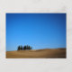 Una postal que muestra un montón de cipreses en un pequeño bosque entre las ruedosas colinas del Val d'Orcia, Toscana, Italia.