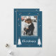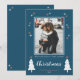 Tarjeta de Felicitaciones Navideñas con árboles de Navidad con garabatos y estrellas y un texto "Deseándote una muy feliz Navidad". La palabra Navidad está escrita en una fuente manuscrita caprichosa. Personaliza esta Tarjeta de Navidad con tu foto y apellido.