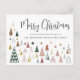 Postal mínima de vacaciones de negocios con ilustraciones abstractos retro de árboles y estrellas verdes, terracota y dorados de Navidad, "Feliz Navidad" en un guión elegante y tu saludo y nombre de empresa en una tipografía simple. Al dorso, personaliza un mensaje de apreciación, sube el logotipo de tu empresa e ingresa tu dirección del sitio web para crear un código QR escaneado.