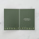 Esta moderna tarjeta de bienvenida para Navidades cuenta con un hermoso arreglo de estilizados árboles de Navidad y copos de nieve en verde claro sobre un fondo verde musgo oscuro. El texto opcional 'Happy Holidays' en la parte delantera y se ha proporcionado una plantilla para añadir un mensaje personal en el interior donde un lindo patrón de árboles bordea el borde inferior. Busque ID861 a ID864 para ver opciones de color adicionales y otros productos en este moderno conjunto de diseño de Navidades.
