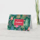 Esta tarjeta de Navidad festiva presenta un patrón de ilustraciones caprichosas de árboles de Navidad en rojo, rosa, azul y naranja sobre verde con el saludo "Feliz Navidad" en texto escrito a mano. con tu nombre debajo para personalizar. Dentro de la tarjeta hay un saludo "Deseos Cálidos para una temporada de vacaciones feliz y saludable" con tu firma para personalizar. Diseñado por el artista de renombre mundial ©Tim Coffey.