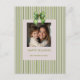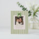 Una tarjeta de vacaciones festiva que puedes personalizar con tu propia foto.El diseño incluye elegantes franjas verdes verticales sobre un fondo blanco, un arco decorativo de cinta verde en la parte superior, y el saludo "Felices Fiestas" en texto verde, seguido del nombre de tu familia con letra más pequeña. La disposición es sencilla pero elegante, perfecta para enviar saludos de temporada. Tienda de diseño de cade ©