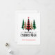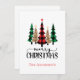 Tarjeta de Navidad con cuadro rojo y negro y árboles de Navidad con cuadro verde y negro de búfalo en la parte frontal con un espacio para su nombre. La parte trasera de la tarjeta tiene un mensaje que puede editar.