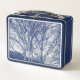 Foto de árboles iluminados por el sol en invierno con efecto cianotipio.