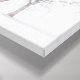 Imagen minimalista de una hilera de árboles estériles durante una ventisca en invierno con un fondo blanco de nieve. Esta es una imagen de color, aunque se parece a b/w.