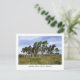 Una postal con una imagen fotográfica a color de algunos árboles inclinados en el bosque de Ashdown, Sussex, Inglaterra, Reino Unido.