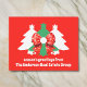 Una moderna tarjeta de bienvenida corporativa para sus viajes de negocios con una hermosa acuarela abstracta de árboles de navidad en verde mudo, rojo, un saludo estacional de personalizable y el nombre de su empresa.