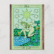 La vintage tarjeta tarot arcana Star número XVII Aquarius, muestra esperanza prometedora y nuevos comienzos encima de una mesa de antigüedades. Bonito matiz verde en un libro de recortes o página de revistas, enmarcado como una huella de arte, o añade un sello y un mensaje de esperanza y nuevos comienzos a alguien en quien piensas con cariño.