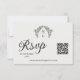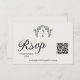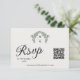 Elegante tarjeta RSVP en línea de respuesta en blanco roto y gris oscuro con un monograma laurel en forma de arco, su código QR y hermosos tipos de letra. Tarjeta en línea RSVP de código QR con un monograma de vegetación de dos iniciales dentro de una corona de arco en tonos verdes y hermosos. Elegante tarjeta RSVP personalizada con su sitio web y código QR para que sus huéspedes puedan ver RSVP en línea.