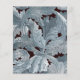 Una invitación de boda económica que combina elementos vintage y modernos. Sobre un fondo de hojas de acanto gris azulado sobre negro (un patrón vintage de William Morris, ahora en dominio público), hay un arco blanco con texto dentro. La palabra Boda y los nombres están escritos en un elegante guión caligráfico, la primera línea es texto arqueado.