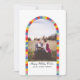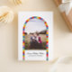 Perfecto para la tendencia de tarjetas con forma de arco, esta divertida y brillante tarjeta de fotos navideñas coloca tu mejor foto en un marco arqueado con un borde de tablero de ajedrez colorido. Si estos colores no son tus favoritos, CÁMBIALOS utilizando la función de edición de diseño. Un texto negro simple y elegante se sitúa debajo de tu foto, lo que te permite enviar el mensaje de alegría que prefieras. La parte posterior de la tarjeta presenta un patrón de franjas de colores coordinados, pero se puede quitar para tener un control total del diseño, lo que te permite añadir más fotos o un mensaje escrito más largo.