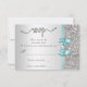Tarjetas de respuesta personalizadas formales y personalizadas para cualquier evento: bodas, baby showers, fiestas de cumpleaños, dulces 16, celebraciones de Quinceañera, compromisos, bridal shower, etc. Elegantes respuestas personalizadas plateadas y azul turquesa / azul turquesa dobles con un hermoso brillo impreso con purpurina, cristales, lentejuelas, lazos y cintas vectoriales impresas brillantes y lindas, imagen impresa elegante diamantes joyas de lujo y texto de respuesta romántico fijo con rizos y florituras de corazones. Estas tarjetas glamorosas y elegantes están decoradas en ambos lados. Tarjetas dobles hermosas, chic, modernas y con glamour. Tenga en cuenta: Todas las invitaciones en Zazzle tienen imágenes impresas planas. Tengo productos coincidentes en mi tienda. El texto, la fuente y los colores de la fuente son personalizables para satisfacer sus necesidades. Si necesita ayuda para personalizar su producto, por favor contácteme a través de mi tienda. Estaré encantado de ayudar. POR FAVOR TENGAN EN CUENTA: -