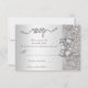 Tarjetas de respuesta personalizadas formales y personalizadas para cualquier evento: bodas, baby showers, fiestas de cumpleaños, dulces 16, celebraciones de Quinceañera, compromisos, bridal shower, etc. Elegantes respuestas personalizadas de doble cara plateadas con un hermoso brillo impreso, lentejuelas, patrón de diamantes, lazos y cintas vectoriales brillantes y bonitas imágenes impresas con diamantes de lujo y joyas con texto de RSVP romántico fijo con florituras y corazones. Estas tarjetas plateadas elegantes y glamurosas están decoradas en ambos lados. Tarjetas hermosas, chic, modernas y de doble cara con brillo y glamour. Tenga en cuenta: todas las invitaciones en Zazzle tienen imágenes impresas planas. Tengo productos coincidentes en mi tienda. El texto, la fuente y los colores de la fuente son personalizables para satisfacer sus necesidades. Si necesita ayuda para personalizar su producto, por favor contácteme a través de mi tienda. Estaré encantado de ayudar. POR FAVOR TENGO EN CUENTA: - Todas las invitaciones
