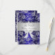 Invitación de aniversario RSVP. Floral plateado y azul con lazo de joya blanca. Exclusivo Zazzle. Personalice con sus propios detalles. POR FAVOR Tenga en cuenta que todas las imágenes planas! NO tienen lazos reales, diamantes o joyas!!