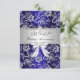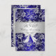 Invitación de aniversario RSVP. Floral plateado y azul con lazo de joya blanca. Exclusivo Zazzle. Personaliza con tus propios detalles. POR FAVOR TENGA EN CUENTA todas las imágenes planas! No tienen lazos, diamantes o joyas reales!!