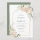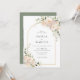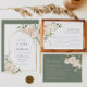 Elegante Invitación Boho Boho White Rose Floral Sage Green Botanical Arch. Estilo de ramo de rosa blanco bohemio con una falsa invitación al arco dorado con flores elegantes y blancas y botánicos verdes en acuarela impresa a mano. El color de fondo verde sabio es magnífico para los bodas modernos y los bodas florales. Invitaciones simples e imprimibles para la primavera, el verano, el otoño (otoño) y las bodas de invierno.
