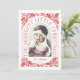 Una tarjeta de vacaciones única y moderna con una forma de foto de arco con tipografía de estilo moderno que se curva elegantemente alrededor de tu foto, y obra de arte original de follaje invernal dibujada a mano. Personaliza fácilmente el frente y la parte trasera con tu propio texto y fotos utilizando la plantilla proporcionada. Para personalizar aún más, haz clic en "Editar usando Diseño para Herramienta". No dudes en enviarme un mensaje para cualquier ajuste menor, saludos personalizados o alteraciones de color. Compra más tarjetas de vacaciones únicas en www.zazzle.com/store/nbpaperco