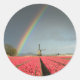 Arco iris, tulipanes y pegatina redondo del molino
