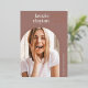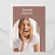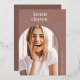 La moderna invitación de graduación fotográfica presenta una foto vertical o orientada a retratos en un diseño de arco único, sobre un fondo de terracota malva polvoriento acentuado con guarnecido de Relieve metalizado plateado. El nombre del graduado y el año de graduación aparecen en la parte superior, con el nombre de la escuela en la parte inferior derecha. Añade un mensaje personal a la parte posterior, junto con una foto adicional.