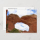 Esta postal cuenta con Arco roto en el Parque Nacional de los Arcos. El Parque Nacional Arches es un Parque Nacional de los Estados Unidos en el este de Utah. Es conocida por preservar más de 2000 arcos de arenisca natural, incluyendo el mundialmente famoso Arco Delicado, además de una variedad de recursos geológicos y formaciones únicas. El parque está situado justo a las afueras de Moab, Utah, y tiene una superficie de 310 km2. Su elevación más alta es de 1.723 m en Elephant Butte, y su elevación más baja es de 1.245 m en el centro de visitantes. Cuarenta y tres arcos han colapsado debido a la erosión desde 1970. El parque recibe una media de 250 mm de lluvia al año.