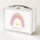 Este diseño presenta un bonito arco iris en tonos pastel de rosa y violeta, personalizado con el nombre del destinatario en una tipografía elegante. El elemento de luna creciente y estrellas le da un toque de color y etéreo. Un regalo ideal para volver a la escuela o los cumpleaños.