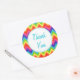 Un patrón arcoiris tradicional decora estos pegatinas de Gracias. Usa a estos pegatinas festivos para un negocio, fiesta de cumpleaños, etc... El diseño es de arte original.