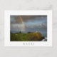 Postal de un arco iris y nubes de lluvia gris oscuro sobre el faro de Kilauea en un promontorio en el Océano Pacífico en la costa norte de Kauai, Hawaii, EEUU con un borde blanco y el texto: 'Kauai'.