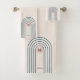 Diseño artístico abstracto de líneas geométricas abstractas de color pastel, arcos y círculos. Un bonito diseño para los amantes del arte abstracto de inspiración retro vintage. Un diseño beige, rosa y azul marino pastel con formas retro. Personalizar el monograma y hágalo el propio!