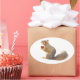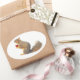 Una pequeña ardilla sostiene un pequeño corazón rojo sobre estos dulces pegatinas de San Valentín.