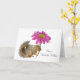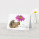 Una ardilla sostiene una gran flor rosa. Personalizar esta tarjeta de cumpleaños.