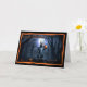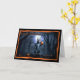 Esta caprichosa tarjeta de Halloween presenta una ardilla adorable aunque un poco espeluznante sosteniendo una pequeña linterna en su pata. La escena, situada en el marco de un bosque oscuro y espeluznante iluminado por la luz de una luna llena, capta el misterioso ambiente de la noche de Halloween. La ardilla, de pie sobre sus patas traseras, parece estar lista para unirse a las festividades de Halloween, rodeada por unas cuantas calabazas dispersas en el suelo del bosque. La tarjeta está bordeada por un borde naranja con un borde irregular, añadiendo un toque de color que contrasta con el fondo oscuro. El mensaje "Halloween feliz" se muestra en la parte superior en un tipo de letra lúgubre y algo inquietante que complementa el tema general. Esta tarjeta es perfecta para los que disfrutan del lado divertido y un poco espeluznante de Halloween y aprecian un toque de naturaleza en sus saludos de vacaciones.