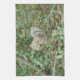 Esta impresionante toalla de cocina muestra una fotografía de una adorable ardilla gris esponjosa que agarra una bellota y se sienta en un árbol en el bosque.
