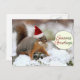 Una ardilla con un gorra de Santa Claus posando en la nieve con un maní en la boca. "Greetings's Season" (Saludos de la temporada) está escrito con escritura roja y verde en una burbuja de discursos que proviene de la boca de la ardilla.