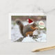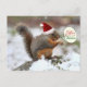 Foto de una ardilla de Navidad en la nieve en caída usando un sombrero de Papá Noel y diciendo "Feliz Navidad" en un globo de voz. La ardilla linda está comiendo un maní y sentada en una roca rodeada de nieve en el suelo. "Feliz Navidad" está escrito en rojo y verde festivo. Esta foto de ardilla sería una manera perfecta de desear a alguien una Feliz Navidad durante las vacaciones y se puede imprimir en muchos productos diferentes.