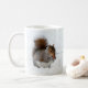 Una adorable ardilla gris de cola empapada se sienta en la nieve sosteniendo y mordiendo una baya roja. La imagen está impresa a ambos lados de esta taza. ... El estilo, el color y el tamaño de la taza son personalizables.