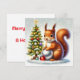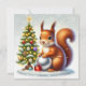 Envía buenos deseos con esta encantadora tarjeta que presenta una ardilla junto a un hermoso árbol de Navidad decorado y adornos brillantes. Un diseño mágico perfecto para compartir tu espíritu navideño. Personalízalo con tus saludos.