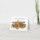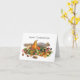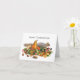 Una ardilla presenta una cosecha de frutas y nueces en una pila de liquen en esta divertida tarjeta de Acción de Gracias.