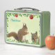 Ardillas y frutas de manzana en verde claro. Texto listo para ser personalizado.