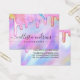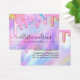 Esta tarjeta de exhibición de aretes colgantes femenina y glamurosa es la forma perfecta de estilizar su embalaje y agregar su propio estilo y personalidad. Cuenta con gotas de purpurina gruesa de color arcoíris de unicornio brillante impreso falso en la parte superior de un fondo iridiscente holográfico. La tipografía es un elegante guión cursivo con una fuente serif moderna para combinar. La paleta de colores incluye rosa, melocotón, azul, púrpura, amarillo y coral. Es chic, bonita, única y lujosa; la forma perfecta de anunciar su negocio y estilizar su material de marketing y publicidad para sus clientes. (Los agujeros de los aretes son solo marcadores impresos, el perforado debe ser completado por el cliente)