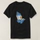 El color es muy bonito al natural, como la foto. El tejido es suave y de buena calidad. Sin defectos en el tintado, ni hilos sueltos o descosidos. Bien la impresión. Los bordes de las letras y el dibujo son nítidos, y el color contrasta muy bien con el de la camiseta.